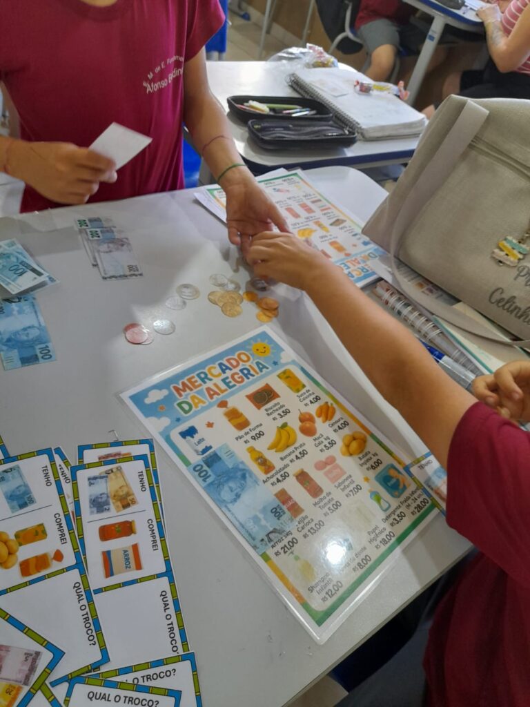 Na Escola Afonso Bedinot, os alunos do 3º ano, com a Professora Celinha, participaram da atividade “Mercado da Alegria”, que proporcionou uma experiência prática com o sistema monetário brasileiro. De forma lúdica e divertida, os estudantes aprenderam sobre cálculo, uso adequado do dinheiro e organização do troco, compreendendo sua importância no dia a dia.