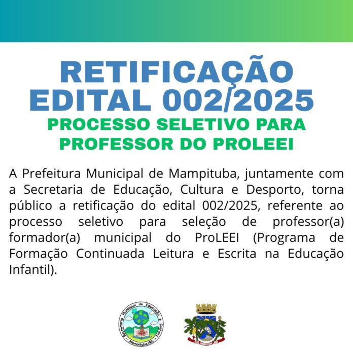 DestaquesSaúde e Educação RETIFICAÇÃO DO EDITAL Nº 002/2025 – PROCESSO SELETIVO PARA PROFESSOR(A) FORMADOR(A) MUNICIPAL DO PROLEEI By Assessoria de Comunicação - 20 de outubro de 2025 0 187 Share on Facebook Tweet on Twitter Para acessar o edital, clique aqui.